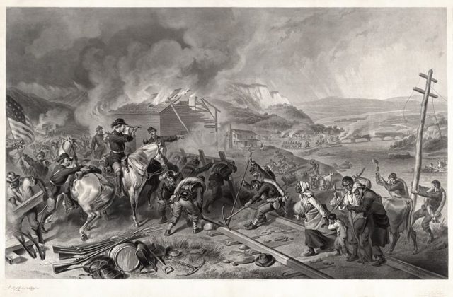 With his army of 62,000 soldiers and 64 cannons, Sherman marched 300 miles to Savannah, Georgia, where they leveled everything. They made sure they destroyed the railroads, ripping up ties, heating and bending the rails around trees, destroyed factories with dynamite and burned down towns on their way there. Sherman had given the men orders to not hurt the civilian population unless they resisted, his intent was to break the back of the South, both body and mind.