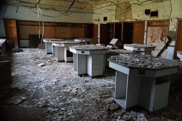The school never managed to scoop up the money and its services were terminated in 2007. During the following years, the buildings continued to deteriorate.