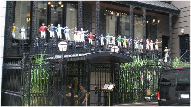 They’ve been around for hundreds of years. You still see them in some front yards in parts of the United States and 33 of them line the wrought-iron entrance to the 21 Club, New York City’s famous former speakeasy. They are lawn jockeys, or men, dressed in riding silks, their right or left arm extended up holding a ring or a lantern. Depending on their color and the cut of their cloth, they are either a nostalgic nod to historic hospitality or a hated symbol of racism. Context is everything.
