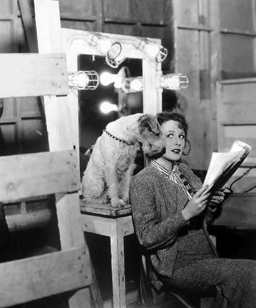 To keep his coat silky and his energy level up, he was fed a special mix of veggies and got no less than twelve hours of snooze time a night. He even had his own publicist, who landed stories in the day’s popular periodicals. The American Magazine detailed Skippy’s life in an August 1938 profile, titled “A Dog’s Life in Hollywood”: Movie actresses stroke Skippy lovingly.