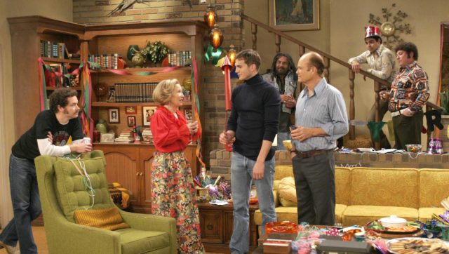 In the series premiere, Kitty hosts a party wearing a red blouse and a floral skirt. Eight seasons later in the finale, she hosts a New Year’s Eve party and wears the exact same blouse and shirt, bringing the show around full circle.
