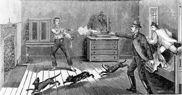 Acting on a tip, Garrett and his deputies arrived at the residence on July 13, 1881. In the early hours of the following morning, he entered Maxwell’s darkened bedroom, seeking information on the Kid’s whereabouts. As the pair conversed, the Kid unexpectedly entered the room, armed and unaware of the sheriff’s presence.