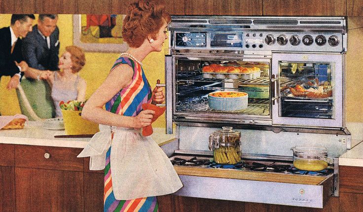 Stove with its own cutting board – as convenience was the best selling point for any new appliance in the 1950s, Tappan created the Fabulous 400 stove which positioned the oven at eye-level rather than at floor level. It was fitted with glass doors and an electric rotisserie motor. It also had a slide-out drawer with a fold-down cutting board for preparing vegetables.