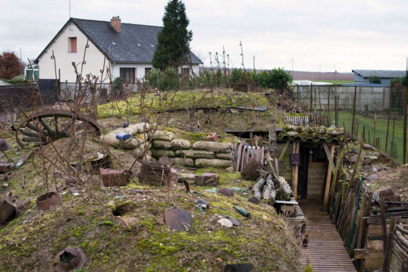 Meanwhile, teetering on the edges of the Zone Rouge on northeastern France, surrounding villages and towns are making the best of a bad situation. To compensate for all the quarantined land they can’t and probably never will be able to farm or ever set foot on, locals take advantage of the region’s military history. In Pozières, one of the villages that was completely destroyed in World War I and subsequently rebuilt, there is a café and restaurant called “Le Tommy”, dedicated to the sacrifice of the allied forces, which has reconstructed a WWI trench in its back garden for tourists (pictured above).