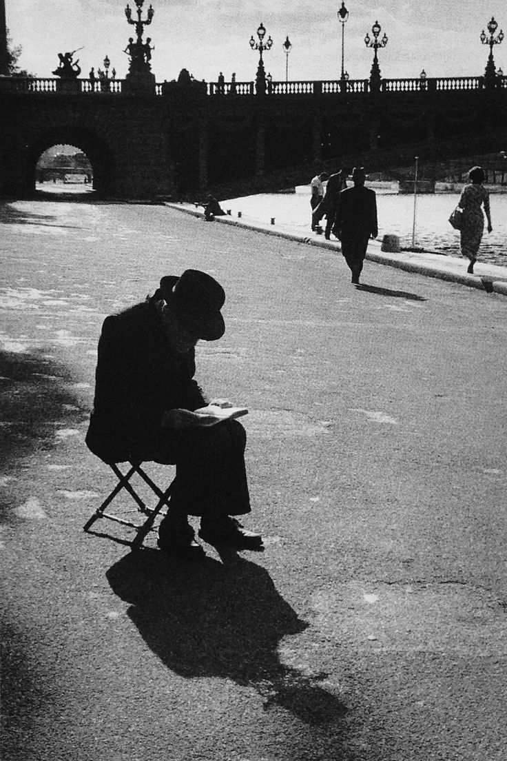 A man imprints his shadow in a street at Siene, Paris, 1953 [Via]