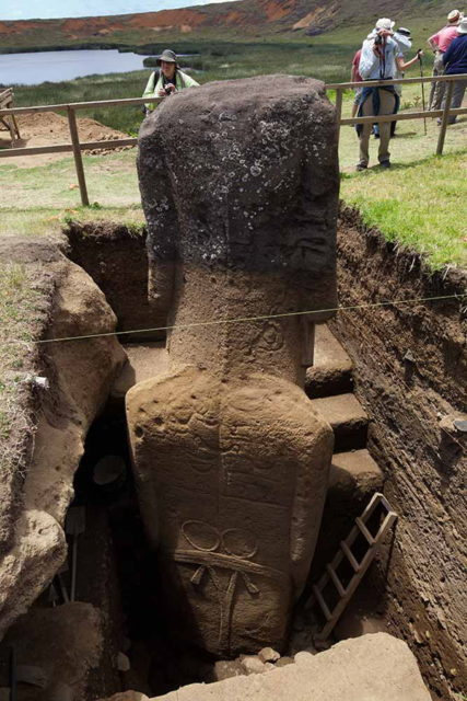 When she posted photos of entirely excavated statues on the EISP website, it received so much attention the website crashed. “I was completely blindsided,” said Van Tilburg. “But now I quite understand it, because most of the photographs that are widely available on the Internet, and certainly in books, deal only with the very photogenic statues that are located on the slopes of the quarry in which they were carved… [they] do appear to be heads only. And, indeed, over the years, the statues were usually referred to as the Easter Island heads…now people are aware they have bodies. I think that’s fabulous. I love it when good science can be turned into public information so quickly.”