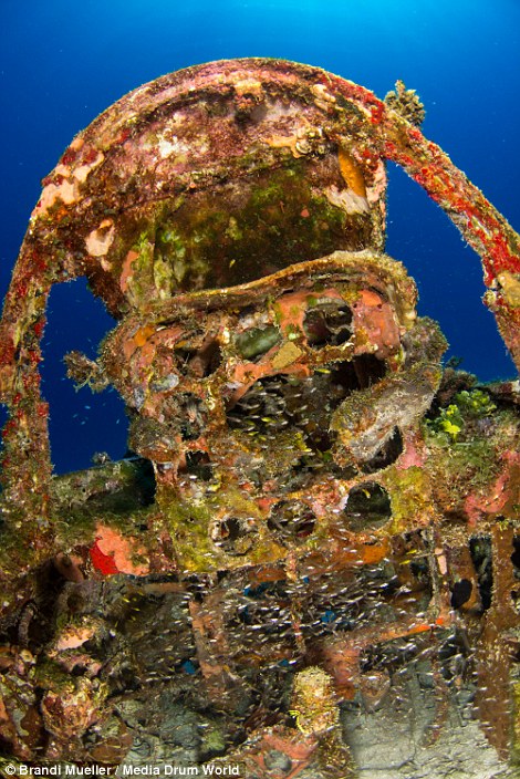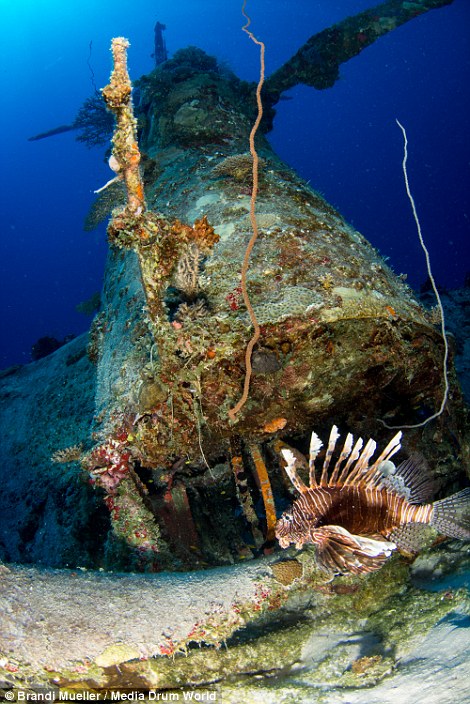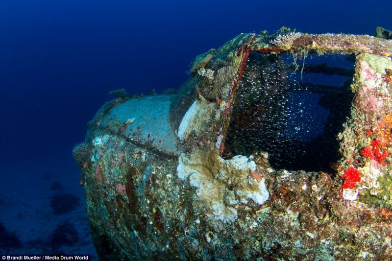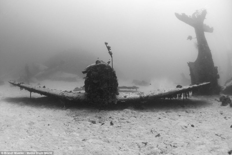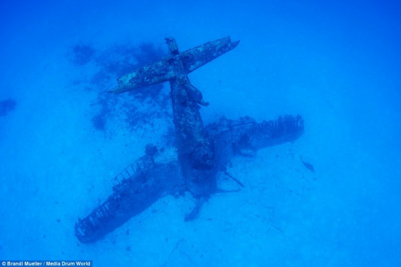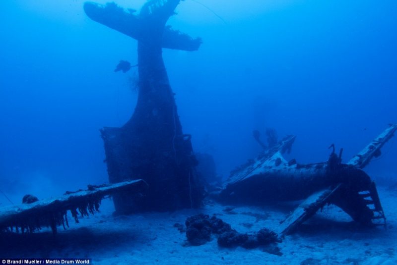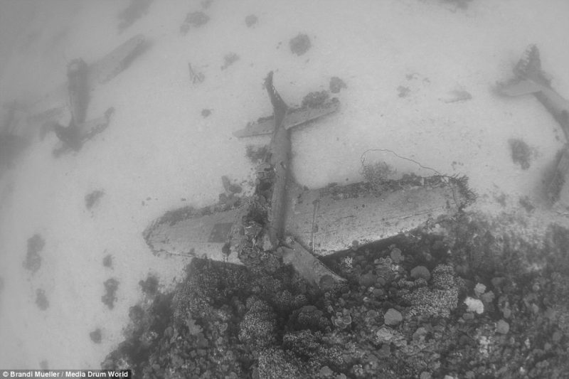 A 31-year-old, Brandi Mueller, from Cameron, Wisconsin, captured the planes while scuba diving around five miles from Roi-Namur in the Marshall Islands.