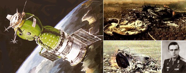 Komarov tried unsuccessfully to orient the Soyuz module for five hours. The craft was transmitting unreliable status information and communications were lost. Using procedures that he had never practiced in training, Komarov managed to align the spacecraft and fire the retrorockets himself. Despite his heroic efforts to save the mission, worse was to come. He successfully re-entered the Earth’s atmosphere on his 19th orbit but as the cabin descended through the atmosphere, the drogue parachute came out but the main parachute remained stubbornly in its container. When the reserve chute was popped out, it tangled in the lane of the drag chute of the main parachute. Soyuz 1 crashed at great speed into the steppe at Orenberg at 7 am, killing Komarov. The cabin exploded on impact and when Soviet Air Force recovery teams arrived all they found was burning metal, the rim of the top of Soyuz being the only hardware they could identify.