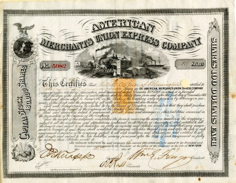 American Merchants Union Express Company ( Became American Express ) – 1869 signed by William Fargo