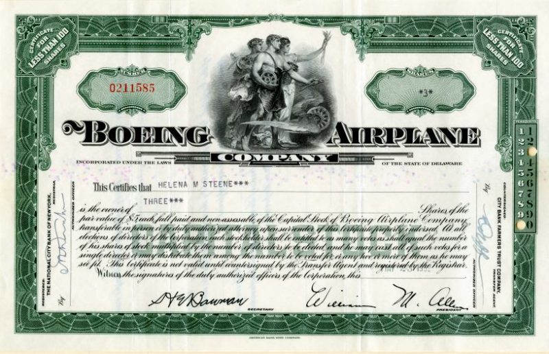 Boeing Airplane Company (Early Boeing Airplane Company stock certificate) – Delaware 1952