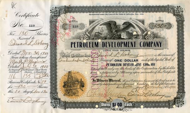Petroleum Development Company signed by Edward L. Doheny (Famous Los Angeles Oil Pioneer & Teapot Dome Scandal) – California 1900