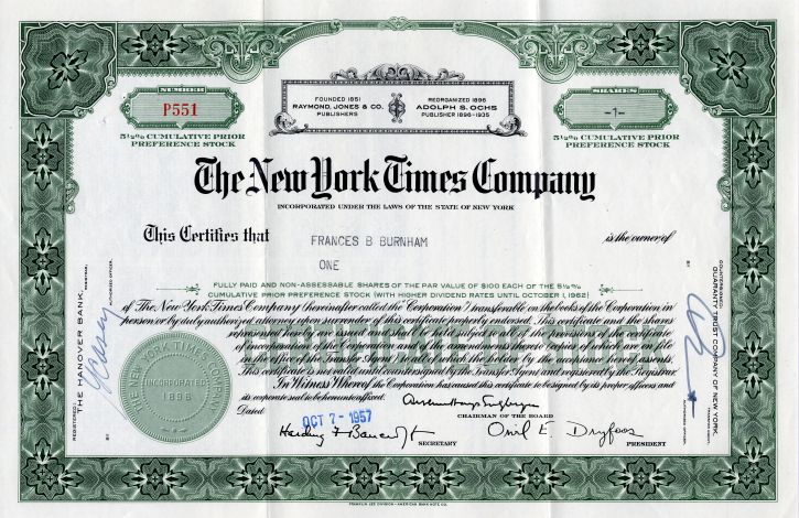 New York Times Company (Orvil E. Dryfoos as President) – New York, 1957