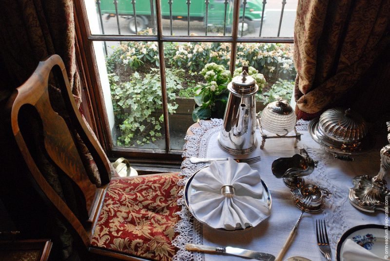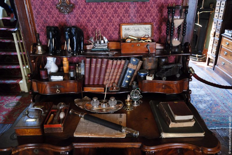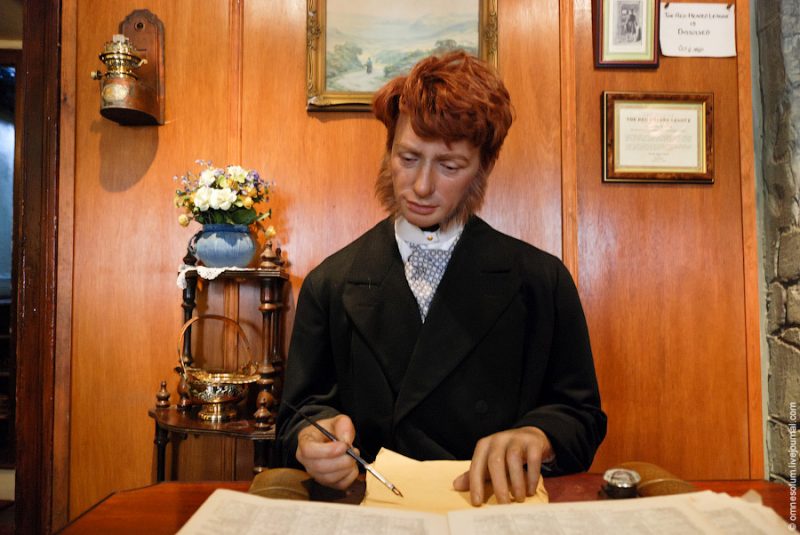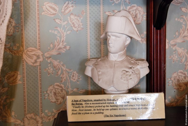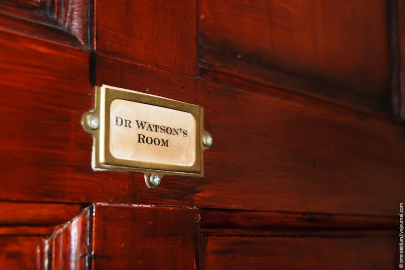 In the living room you can find many items that are often mentioned in the novels: Holmes felt hat, smoking pipes, Sherlock’s violin, a magnifying glass, notebooks, a variety of chemicals and equipment that Holmes used in the cases, Persian slippers (in which Holmes sometimes stored tobacco), etc