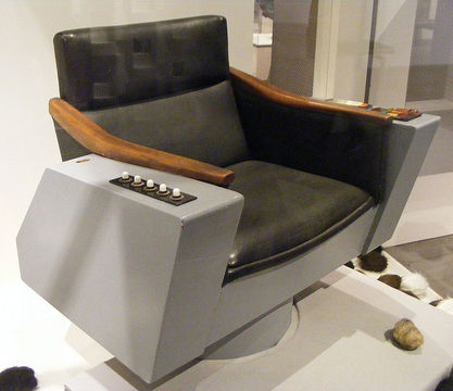 The original Star Trek chair which William Shatner graced with his behind on many a deep space voyage. It was picked up by a Trekkie fan who received a tip from a friend at Paramount Pictures that the Star Trek set was being scrapped and was up for grabs (15). Its current whereabouts are said to be within a bookstore within Los Angeles.via
