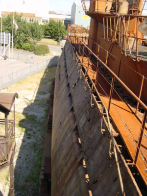 Transported to Birkenhead, England, in 1996, the vessel formed part of the Warship Preservation Trust’s collection at Birkenhead Docks until the museum closed on 5 February 2006. On 27 June 2007, the Mersey travel transit authority announced that it had acquired the submarine to display at the Woodside Ferry Terminal.