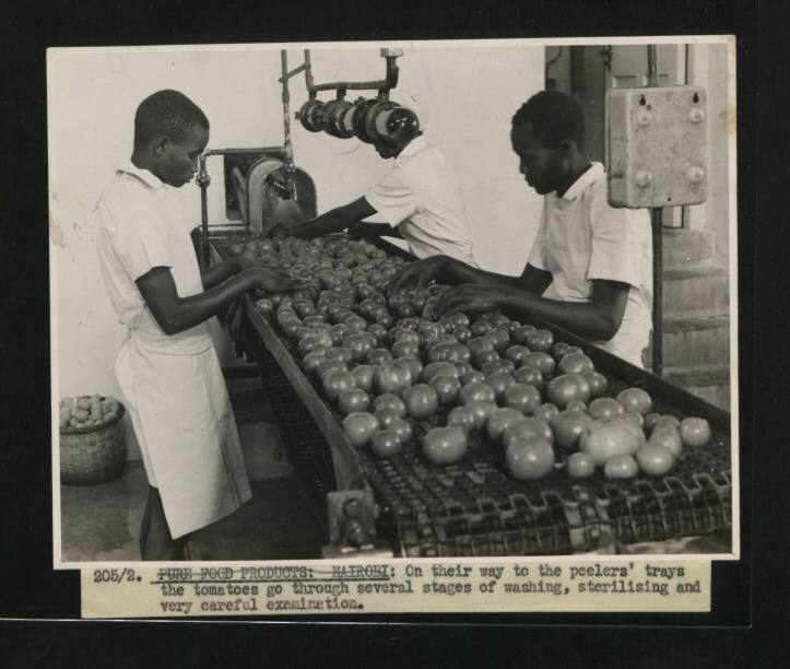 On their way to the peeler’s trays the tomatoes go through several stages of washing, sterilising and very careful examination. (Picture issued 1945)