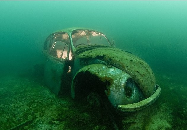 However, these laws did not stop a famous photographer from capturing some eerie beauty beneath the surface. Alex Mustard is a British photographer who decided to travel the world to find some of the weirdest things that have sunk. Besides shipwrecks he has discovered an old motorbike that was once used by British troops in World War II. He has also found old, rusty British trucks that have been forgotten. Other interesting pieces are rifles that haven’t been used, and even the shell of a VW Beetle. Mustard said that these particular wrecks attract divers from all over because they cannot be seen from the surface, making it even more of a mystery to explore. Apparently, the VW Beetle was purposely sunk to provide a place for divers to visit. Mustard said that it is the most bizarre thing to see under water; like finding something familiar in the most alien place.