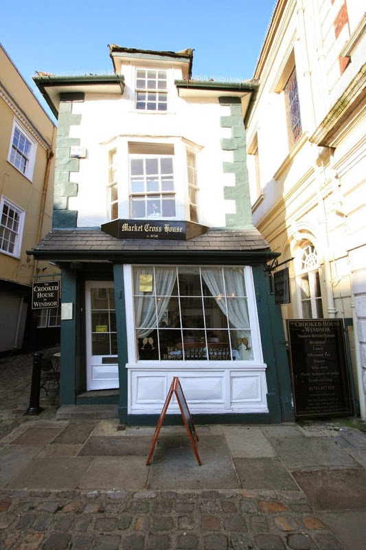 The Market Cross House of Windsor had stood straight for almost 100 years until in 1687 the city council ordered the object to be demolished in order to make room for building the neighboring Guildhall. A bitter land dispute ensued over the property, and eventually the council got to cut loose by a court order and had to rebuild the Market Cross house and make the Guildhall its present size.