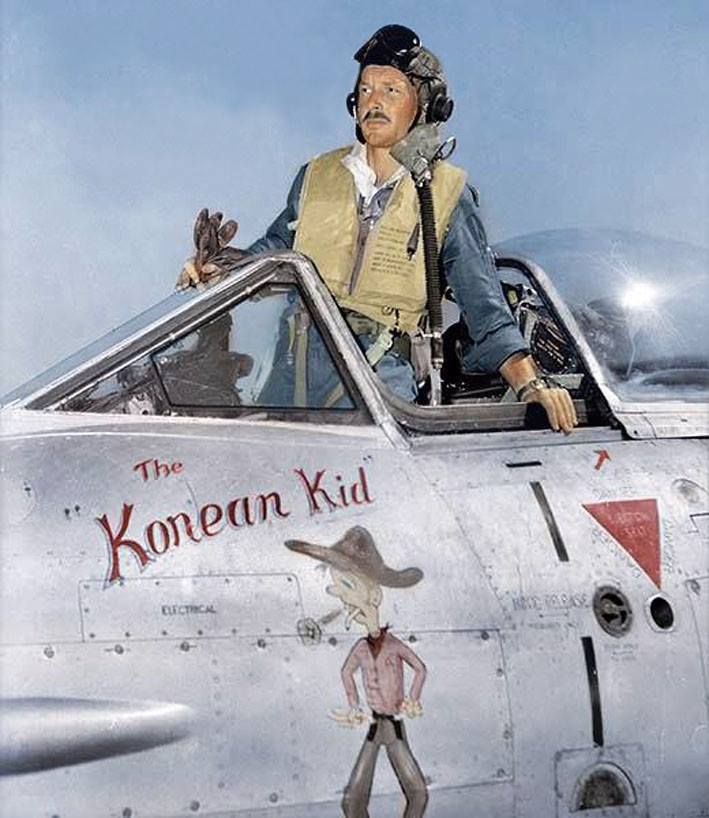 The nose art on his aircraft reads “the Korean Kid’.