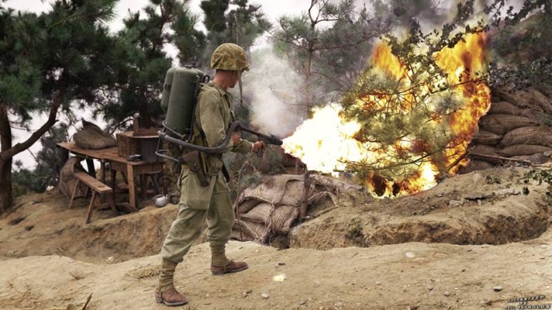 Unfortunately for the NK, Comstock (LSD 19) and Fort Marion (LSD 22) had also landed 6-M26 tanks and this flame thrower team, and they killed all NK who would not clearly surrender.