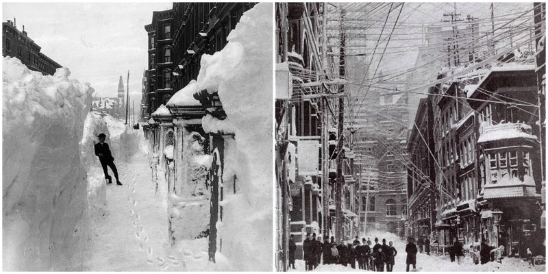 The Great Blizzard of 1888 was one of the most severe recorded blizzards in the history of the United States of America. Snowfalls of 20–60 inches (51–152 cm) fell in parts of New Jersey, New York, Massachusetts, Rhode Island, and Connecticut, and sustained winds of more than 45 miles per hour (72 km/h) produced snow drifts in excess of 50 feet (15 m). Railroads were shut down and people were confined to their houses for up to a week.