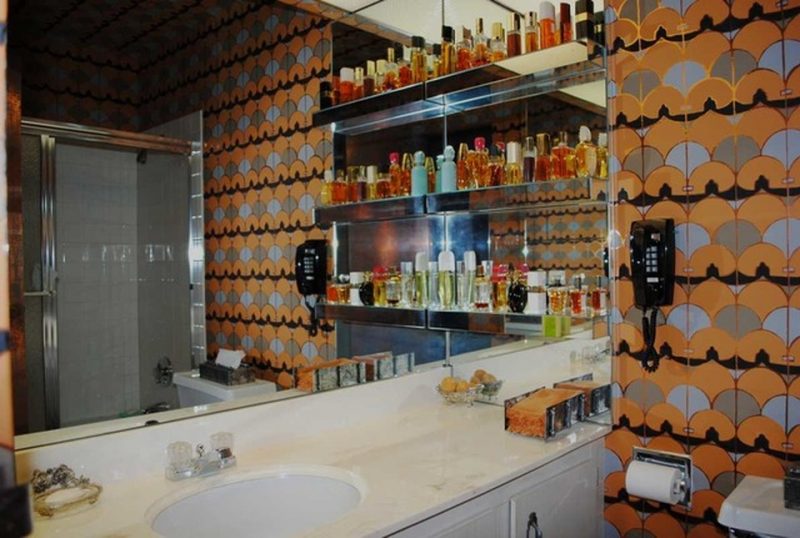 The other one is in orange, the second color that dominates the rooms. You can notice that the bathrooms are fully furnished, together with items like perfume bottles. According to Lauri Rosenbloom, the agent that is responsible for selling the condo, the perfumes are all vintage, and they were left there by the owners back in the 1970s or 1980s.