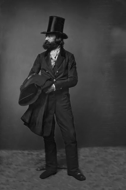 During the 1850s, men started wearing shirts with high upstanding or turnover collars and four-in-hand neckties tied in a bow, or tied in a knot with the pointed ends sticking out like “wings”. The upper-class continued to wear top hats, and bowler hats were worn by the working class.
