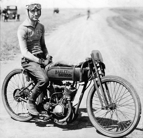 Among other things, the oval track of Playa del Rey circuit of Los Angeles was his application; In 1916 and 1917 he drove mainly long-distance races. In April 1918 he was recruited soldier in the First World War and for a “Signal-Corp” in Europe; in August 1919, he returned from Europe and was recruited by Harley-Davidson as a factory driver. He drove in the later becoming famous as the “Wrecking Crew” racing department of Harley-Davidson, “pulped” all the oval track racing and records, and was gathered in the famous “US-racers of the 1920s”, so among others Ralph Hepburn, Otto Walker, Red Parkhurst and Ray Weishaar. In 1998 he was recorded in the Hall of Fame of the AMA.