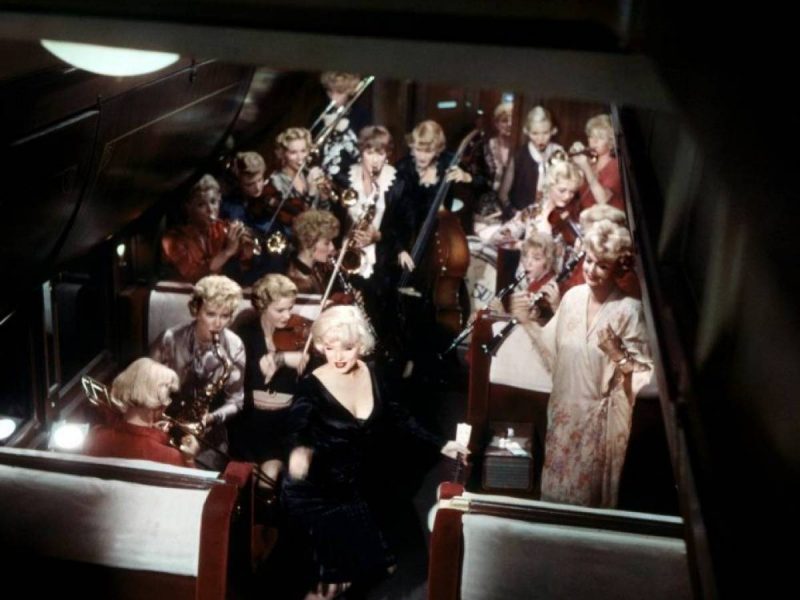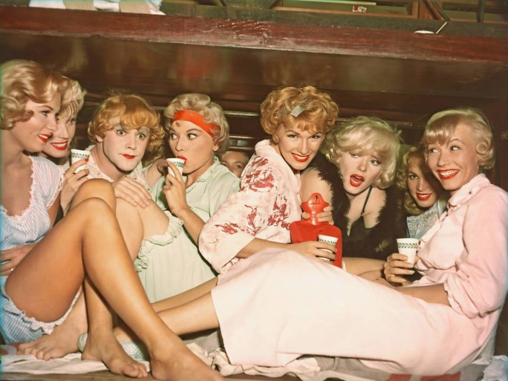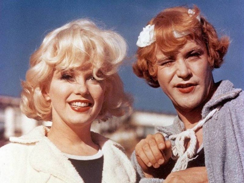 There were many problems with Marilyn Monroe who lacked concentration and suffered from addiction to pills. She could not memorize many of her lines and required 47 takes to get “It’s me, Sugar” correct, instead saying either “Sugar, it’s me” or “It’s Sugar, me”. Tony Curtis and Jack Lemmon made bets during the filming how many takes Marilyn would need to get it right. For the scene with Shell Jr. and Sugar at the beach three days for shooting were scheduled. Although Marilyn Monroe had plenty of complicated lines, the whole scene between Shell Jr. and Sugar was completely finished in only 20 minutes.Monroe’s acting coach Paula Strasberg and Monroe’s husband Arthur Miller both tried to get influence into the production, which Wilder and other crew members found annoying.