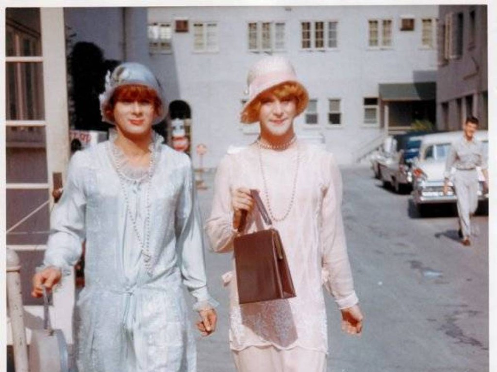 Curtis And Lemmon In Costume Walking Through The Back Lot
