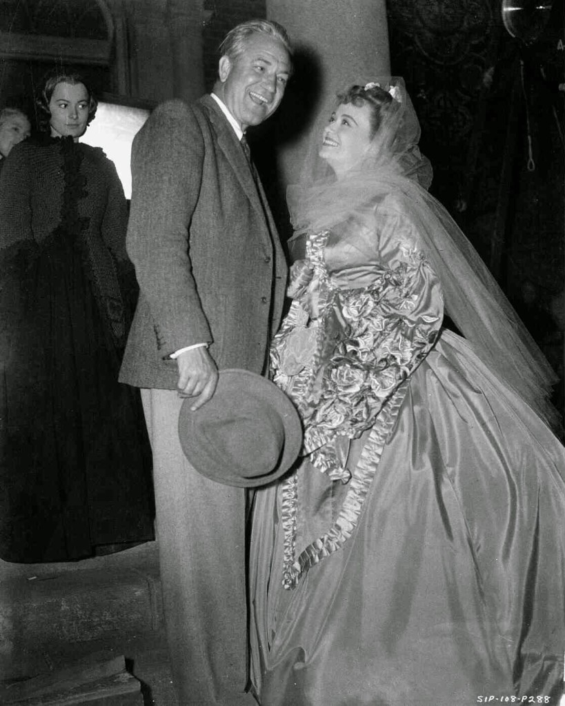 Crew filming Peachtree Street scene; director Victor Fleming works with Vivien Leigh as Scarlett O’Hara and William Bakewell as mounted Officer.