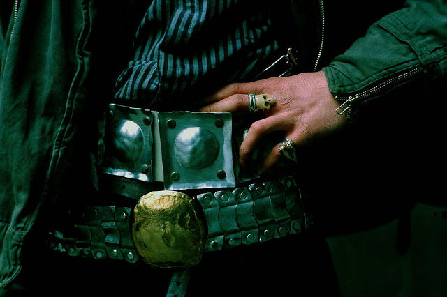 Early punk fashion adapted everyday objects for aesthetic effect: ripped clothing was held together by safety pins or wrapped with tape; ordinary clothing was customised by embellishing it with marker or adorning it with paint; a black bin liner became a dress, shirt or skirt; safety pins and razor blades were used as jewellery. Also popular have been leather, rubber, and vinyl clothing that the general public associates with transgressive sexual practices like bondage and S&M
