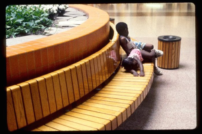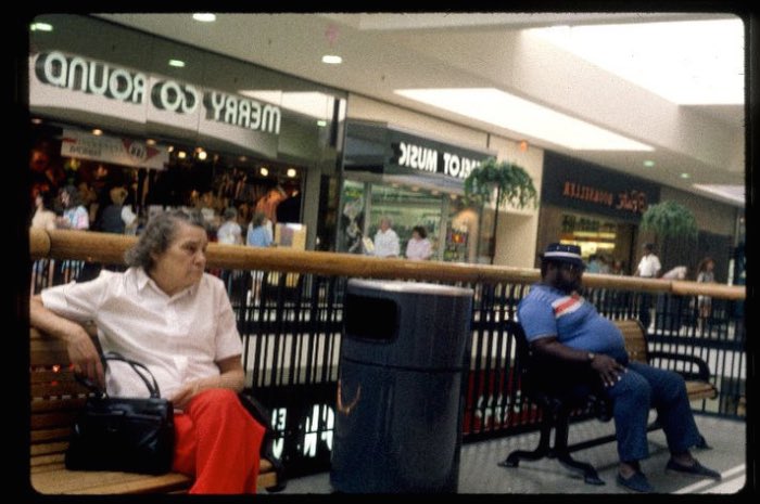 In 1989, when Galinsky was 20 years old, he and a friend spent six weeks driving across the U.S., taking pictures in malls. “At the time, the mall was the new public space, the new community center where people would interact,” Galinsky later said. “This was pre-Internet, pre-cellphone, there was smoking in malls, it was before the Gulf War. It was this weird moment in time where things were getting ready to change.”Over the years, many of these pictures have been reproduced in various publications and on a number of websites.One critic has commented that Galinsky captured, in these pictures, “in a beautifully off-kilter high-flash way, the cool ugliness of suburban style.” Another has written that “What makes these photos so appealing and oddly touching is the nostalgia bound up in them….They are from a not so distant past….The collection is imbued with a sense of the everyday melancholy but also manage to be a pop-anthropological feast.” A collection of some of these photographs, Malls Across America, will be published by Steidl in October 2013.