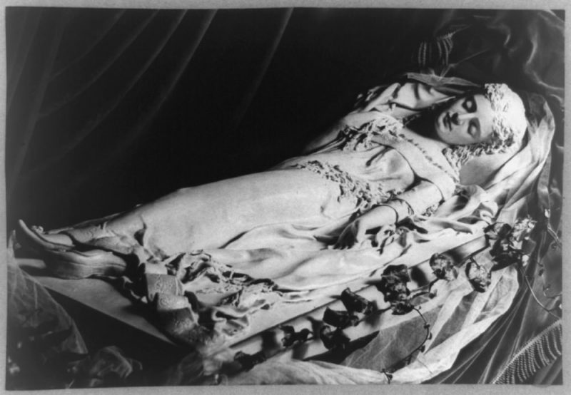 In 1873, she made a sculpture of the blind princess Iolanthe from Danish poet and playwright Henrik Hertz’s verse drama King René’s Daughter. Dreaming Iolanthe, as it was known, was exhibited at a Cincinnati gallery in 1874 for two weeks and attracted more than two thousand people keen to catch a glimpse of the sleeping princess.