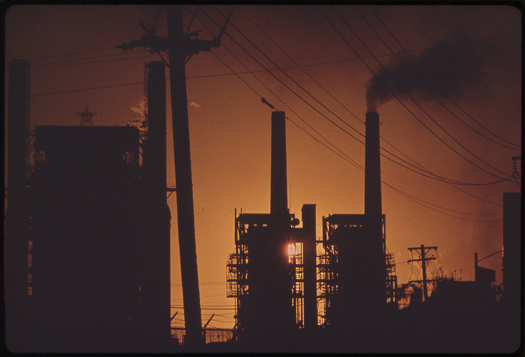 Oil-Refinery-in-the-Sunset. Taken in February 1973, by John Vachon, DOCUMERICA, U.S National Archive