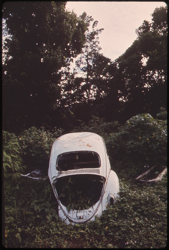 Abandoned Car Off Highway in Rio Grande. Taken in February 1973, by John Vachon, DOCUMERICA, U.S National Archive