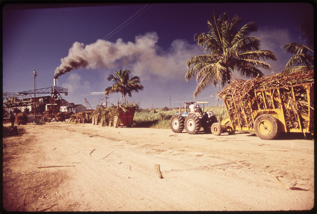 Sugar-Refinery.-Trucks-Bring-in-Freshly-Cut-Cane.Taken in February 1973, by John Vachon, DOCUMERICA, U.S National Archive