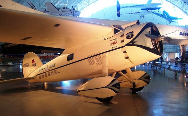 Post was hired by Oklahoma oilmen Powell Briscoe and F.C. Hall in 1930 as a private pilot. Hall had purchased a single-engine Lockheed Vega, a prevalent aircraft of the 1930s, and named the plane the Winnie Mae after his daughter. After winning the National Air Race Derby flying from Los Angeles to Chicago, Post painted “Los Angeles to Chicago 9 hours, 8 minutes and 2 seconds August 27, 1930” on the body of his plane. Second place winner, Adam Charles Williams, finished at 9 hours, 9 minutes, and 4 seconds. The plane was popular among aviators and was the same model that Amelia Earhart flew.