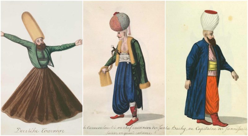 ‘Kavuk’, however, was the most common type of bashlyk. For this reason, a related tradesmenship was formed in the 17th century. Fur was a material of prestige in that period. Political crises of the 17th century were reflected as chaos in clothes. The excessively luxurious compulsion of consumption and showing off in the Tulip Era lasted till the 19th century. The modernization attempts of Mahmut II in 1825 first had its effects in the state sector. While ‘sarık’ was replaced by ‘fez’, the people employed in Bab-ı Ali began to wear trousers, ‘setre’ and ‘potin’.