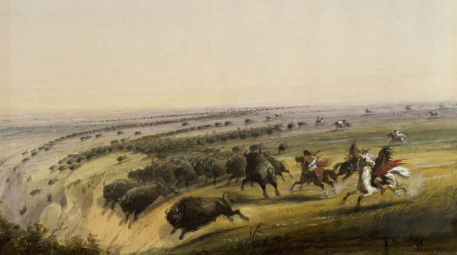 In the late 1800s, the bison was hunted to near-extinction as the European settlers made their way across the open, vast American West. Most of the animals that survive today are in commercial herds and raised for their meat. They are generally interbred with cattle. The Blackfeet have a commercial bison herd that was established in 1972 which numbers more than 400 animals.