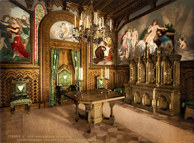 King Ludwig II moved into his dream castle in 1884, a year later inviting his mother, Marie, to visit the castle to celebrate her 60th birthday. Despite the sheer size of Neuschwanstein Castle, there was not much space for the Royal court and could only contain king’s personal residence and rooms for the King’s many servants. Neuschwanstein Castle was constructed as such to provide a sort of theatrical residence for the king and was not a typical royal castle with large courts and guest rooms.