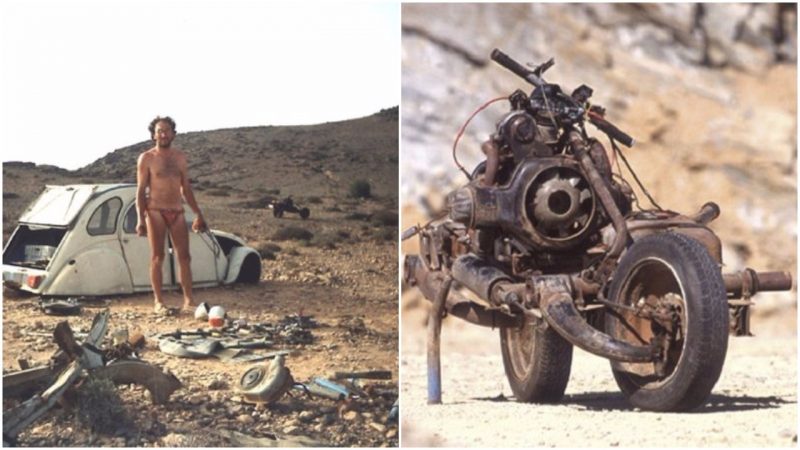 In 1993 Emile Leray, then a 43-year-old former electrician, decided to go on an adventure and drive his Citroen 2CV from the city of Tan Ta and cross the Moroccan desert. However, not all went according to plan. After going off road Emile crashed his car and was left stranded in the middle of nowhere. Deciding that he wouldn’t make it out of the desert on foot, Emile decided to build a makeshift motorbike using parts from his now wrecked car.