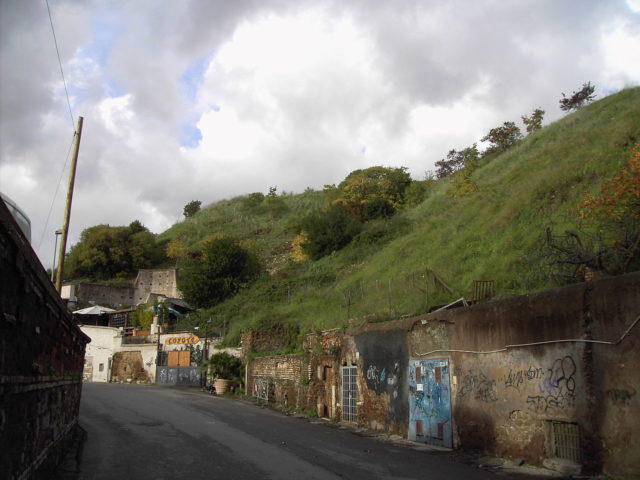 Monte Testaccio is a mound made up of shards of broken pottery covering about 220,000 square feet, holding 760,000 cubic yards of broken pottery vessels, known as amphorae, which were used to transport olive oil.