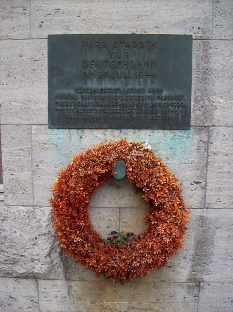 Stauffenberg was third in line to be executed, with Lieutenant von Haeften after. However, when it was Stauffenberg’s turn, Lieutenant von Haeften placed himself between the firing squad and Stauffenberg, and received the bullets meant for Stauffenberg. When his turn came, Stauffenberg spoke his last words, “Es lebe unser heiliges Deutschland!” (“Long live our sacred Germany!“) Others say the last words were: “Es lebe das geheime Deutschland!” (“Long live the secret Germany!“) Fromm ordered that the executed officers (his former co-conspirators) receive an immediate burial with military honours in the Alter St.-Matthäus-Kirchhof in Berlin’s Schöneberg district. The next day, however, Stauffenberg’s body was exhumed by the SS, stripped of his medals and insignia, and cremated. Stauffenberg’s family had already fled the country.