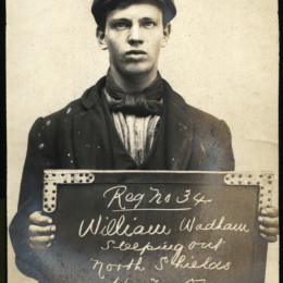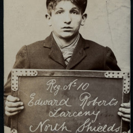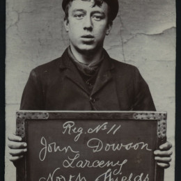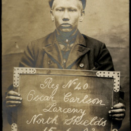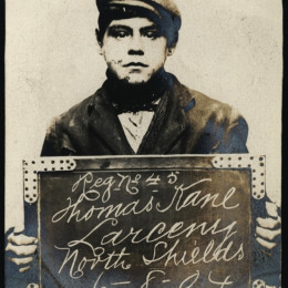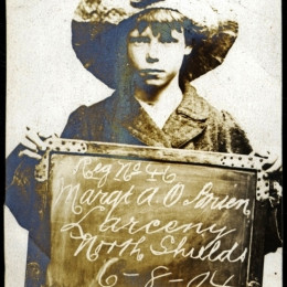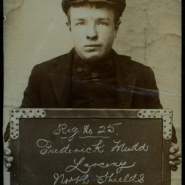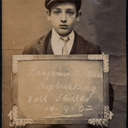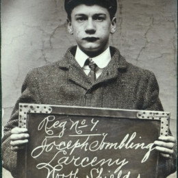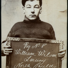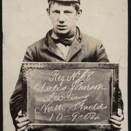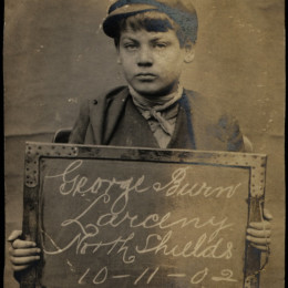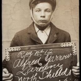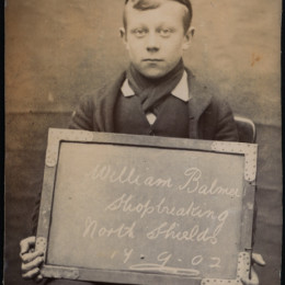 We stumbled upon an archive of the bleak assembly of photographs above at Tyne & Wear Archives of the North Shields Police Court. Amongst this archive is a set of mugshots of boys and girls holding the cards and records showing that children of yesteryear received sentences now deemed fit for adult criminals only.