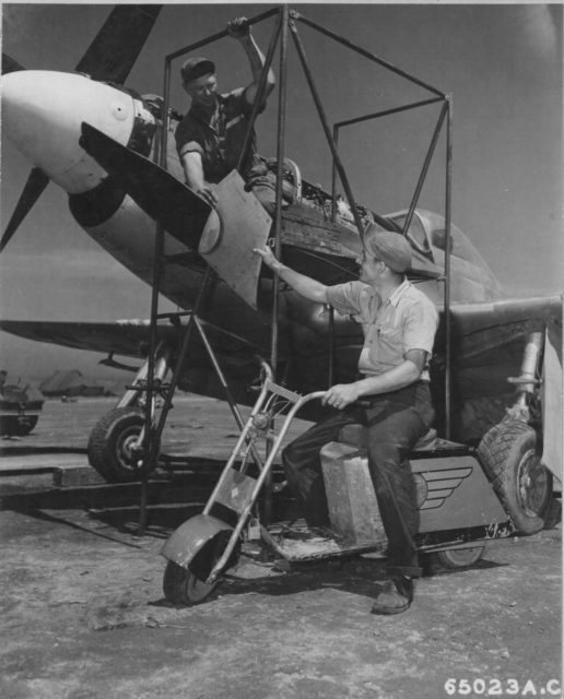 9.The last fun use of broken down planes during the war came from fuselage panels and cowling. The ultimate result was a motorized scooter that was built from scratch. That sounds like a fun way to move throughout the day as your fixing up P-51s at Iwo Jima.