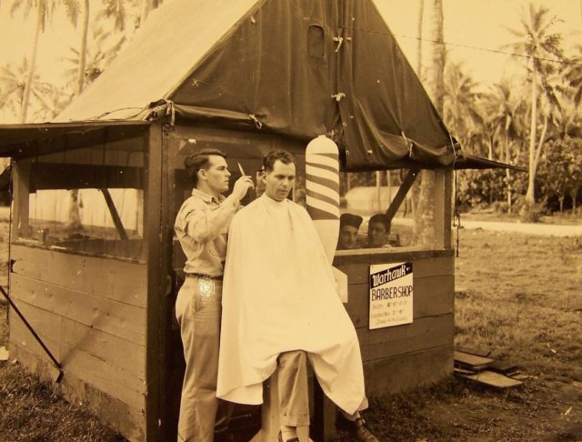 - If you were chilling on a South Pacific island and you needed a haircut, you wouldn’t have to look any further than a bomb shell. The Warhawk Barbershop gave a world class cut for the soldier at war, and the barber pole was none other than a fancy bomb shell.