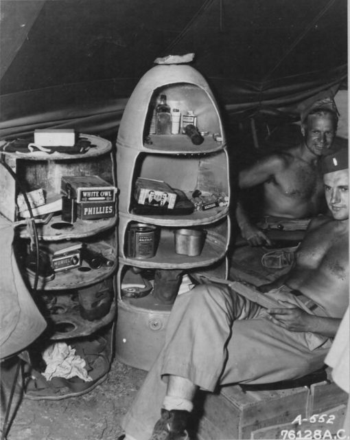 - Ray Petit crafted a chair out of a wooden crate of a belly tank. This chair may not rival Lazy-Boy, but it was included with a reading light, a radio that used a fancy sleep timer, a nice rack to put his favorite magazine, and a lovely ash tray. That sounds like a fantastic way to spend a night off of fighting.
