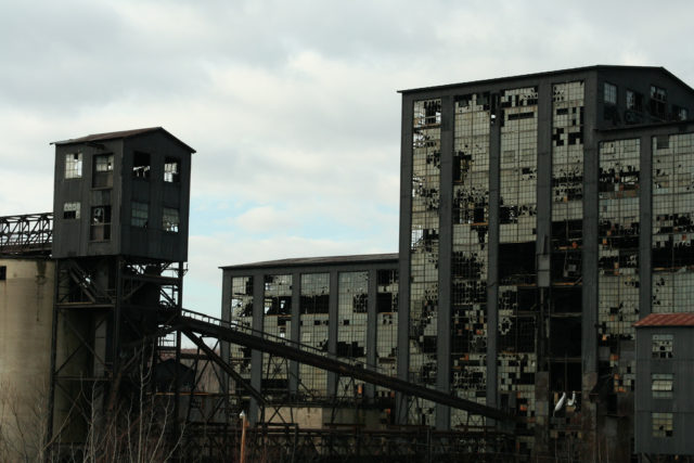 Blue Coal’s Huber Breaker was a landmark located in the borough of Ashley, Hanover Township, Luzerne County, Pennsylvania, USA. It was the last of the great anthracite coal cleaning and processing plants. The breaker was built in 1939 to replace the Maxwell Breaker, a wooden structure built by the Lehigh & Wilkes-Barre Coal Company located at the colliery.