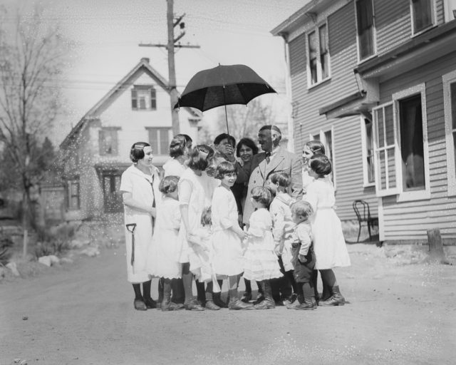 Leslie Jones, was a Boston, Massachusetts photographer who worked for Boston Herald-Traveler newspaper for 39 years from 1917 to 1956. His photographs document both the usual and the unusual in the daily life of Boston. Sometime in 1925, Jones captured the unusual part when he paid a visit to a local wife and husband that had been buying a lot of shoes, not because they had shoe-wear obsession, but because they had thirteen children.